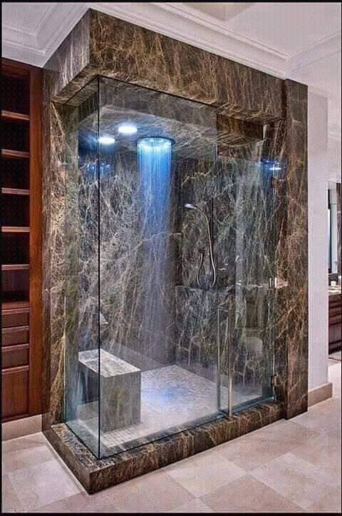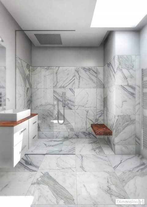 • حوائط دوش مرصّعة بالرخام مع تصاميم تسمح بتصريف المياه بسهولة.